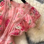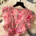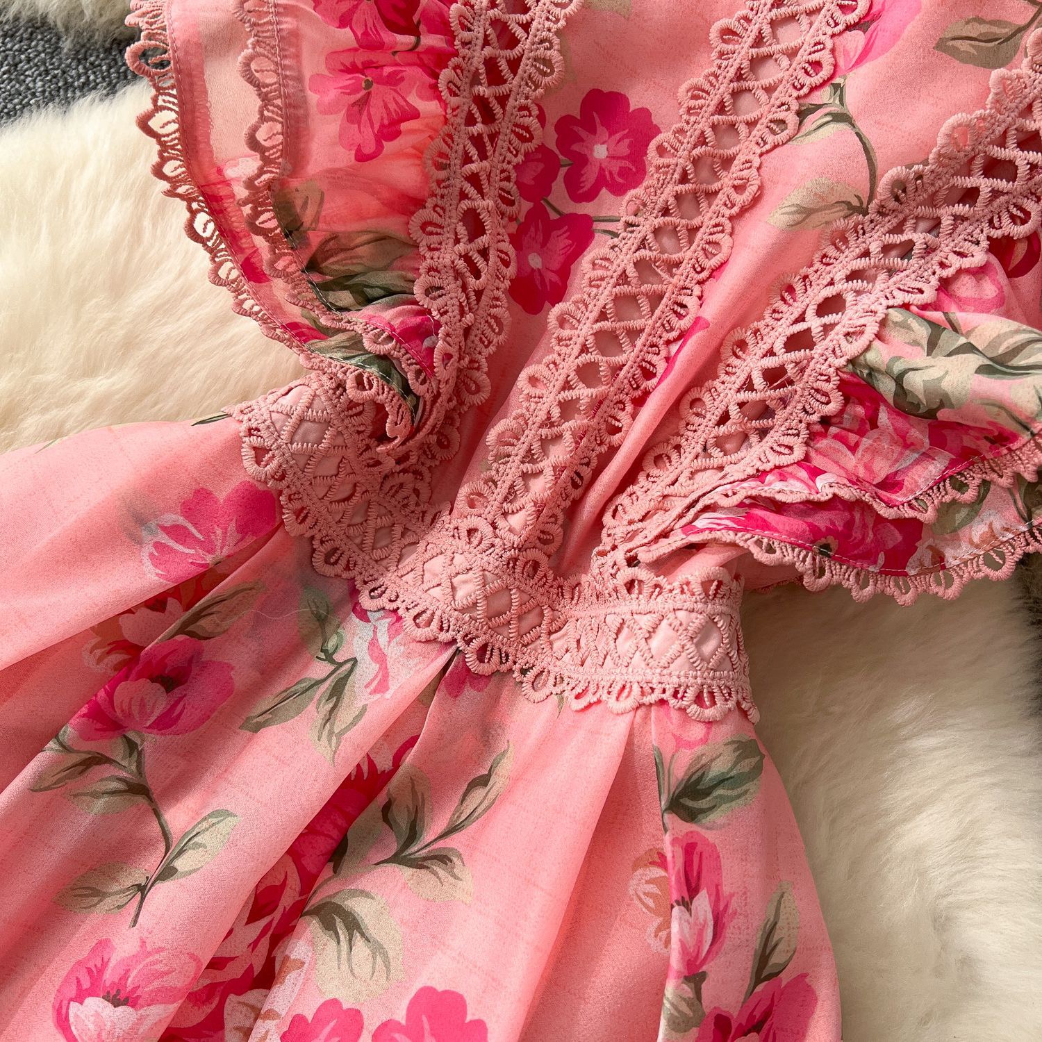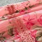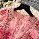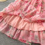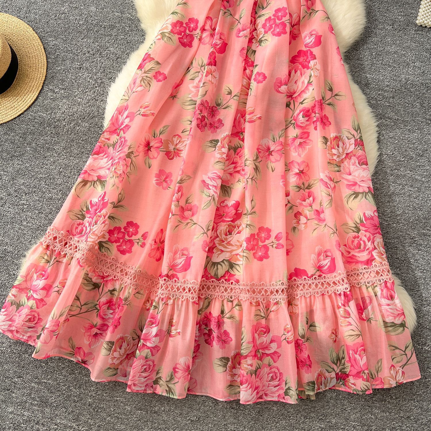 Romantic Pink Floral Chiffon Maxi Dress with Lace Trim